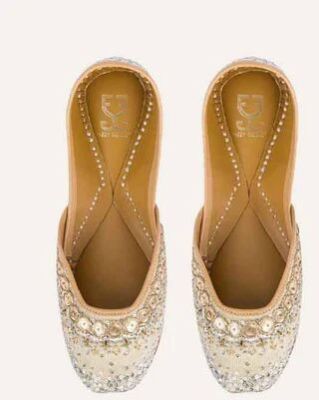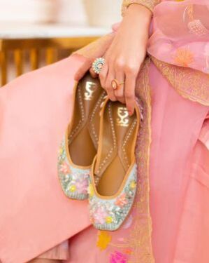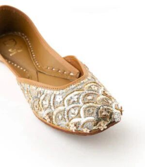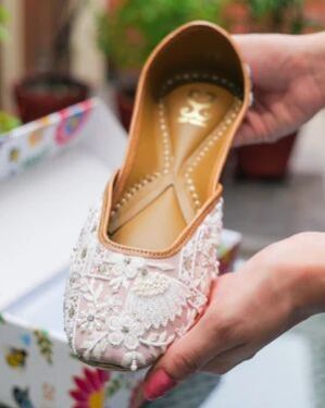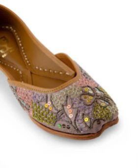 A sparkling interplay of mirror-work and floral motifs, this jutti is designed to make you stand out at any event. It is comfortably cushioned and something youd want to add to your closet right away. Pair it up with your pastels, whites, and soft gold outfits, and have compliments coming your way.
