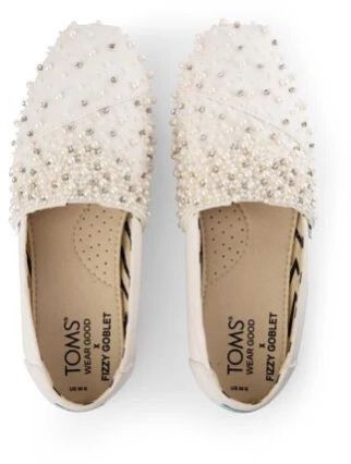 Get ready to dazzle with the TOMS X Fizzy Goblet Pearl Love Slip-Ons! Hand-stitched with pearls and Swarovski studs, these slip-ons are a sparkling delight. Designed using earth-conscious materials, you can shine bright while treading lightly on the planet. This style is perfect for those who love to add a touch of glamour to their everyday look