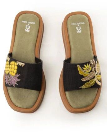 Join the garden party with this gorgeous floral pair. Highlighted by multi-coloured resham embroidery, these comfy slides can add liveliness to your look (and plans).