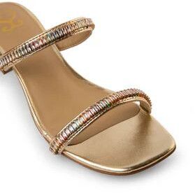 Too many parties to attend? Flaunt this pair that will easily leave them all starstruck. With ombr sequin fabric heels as the highlight and dazzling multicoloured straps, this heel can help you shine bright. Get it and make them all follow your style game