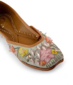 If a blossoming pair is what you need then we have you covered with our gorgeous jutti thats adorned with hand-embroidered 3D flowers on a mint net base. Apart from your pastel traditionals, you can also style this jutti with your western dresses.