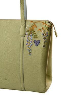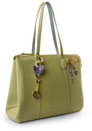 Handcrafted to make you stand out in style, this gorgeous tote is a perfect pick from work to weekend. Splashed in a unique pistachio-green tone and highlighted by nature-inspired design, and the iconic gold-toned logo charm, this bag can store your mini laptop and ipad, along with other day-to-day belongings. So, go ahead, walk in style with this bag as your everyday companion