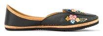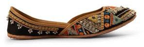 Theres something so magical about this exquisite pair that youd want to style it on rotation. Be it your special date coming up or a festive night, this jutti with oxidised metal beads, floral zardozi, and aari will simply make you stand out and earn compliments.