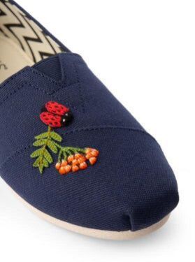 Prepare to be enchanted by the TOMS X Fizzy Goblet Resham Embroidered Midnight Garden Slip-Ons! Inspired by the folklore and traditions of Hungary, these slip-ons are infused with vibrant colours and resham floral embroidery. Slip into these beauties and let your style blossom with each step.