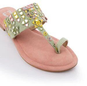 Bright and blossoming, you can team up these kolhas with your light pastel dresses in ivory, lime-yellow, and soft pinks.