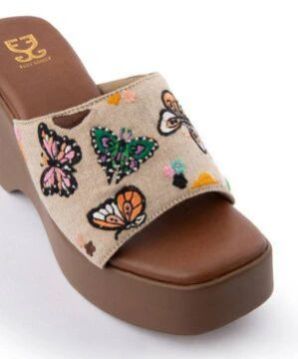With this pair, we can guarantee that youll have fun styling it. These wedges feature cheerful butterfly motifs on a beige base. Cushioned to be extra comfy, it is time to add a spring to your step.