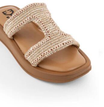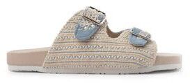 If you love anything blue, breezy, and beaches, then youve got to slip into a pair as unique and fresh as Malibu sliders. With raffia detailing on a schiffli base, these sliders can perk up your casual look.