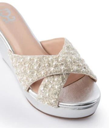 Shine brighter than everyone around with these comfy wedges that are adorned with pearls and beads. With comfortable padding, you can wear these wedges for long hours at any sparkling soire