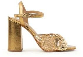Make your style mesmerising with this gorgeous gold heel that's accentuated by dori work and a sprinkle of sequins on a soft tissue-silk base. Adding to that, it has one-inch heel height with a touch of embroidery making it a unique pair