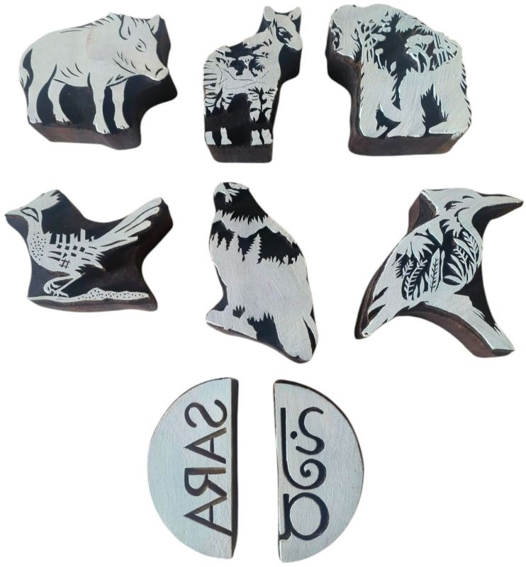 We are S K Art, a leading Manufacturer and Supplier of high-quality Handcarved Animal Wooden Printing Blocks. Our printing blocks are made from durable hard wood, perfect for printing on fabric or paper. Each block features a unique animal design meticulously handcarved for precision. Packaged in a box, these blocks come in a charming white and brown color combination. Elevate your printing projects with our exquisite handcrafted printing blocks from S K Art.