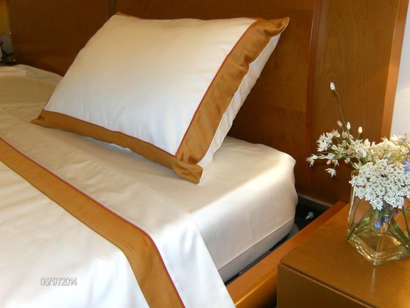 We are offering bed sets including : 1 down sheet , 1 douve cover , 2 pillow cases , oxfort style (pillow case with frame is available) the fabric is cotton saten 300 up to 600 tc , very best quality , made in italy.the pillow cases are with color bordur , hemstitch and miter corners. ( many color combinations available)