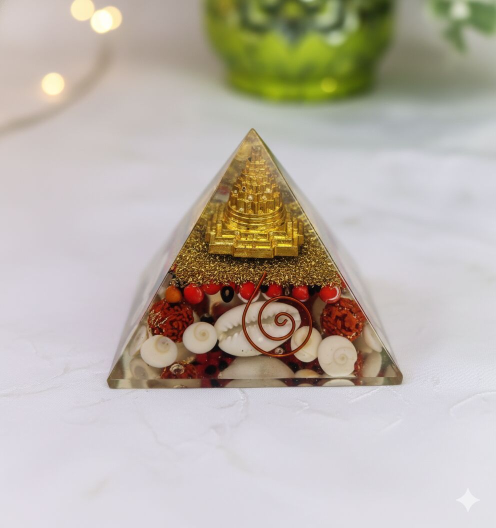 A Concentrated Source of Vedic Fortune and Positive Energy: Offer your customers a sacred and powerful tool for spiritual and material success with our Wholesale Shree Yantra Gomti Chakra Orgonite Pyramid. This highly specialized pyramid is meticulously handcrafted with a powerful blend of traditional Vedic items and Orgonite components: