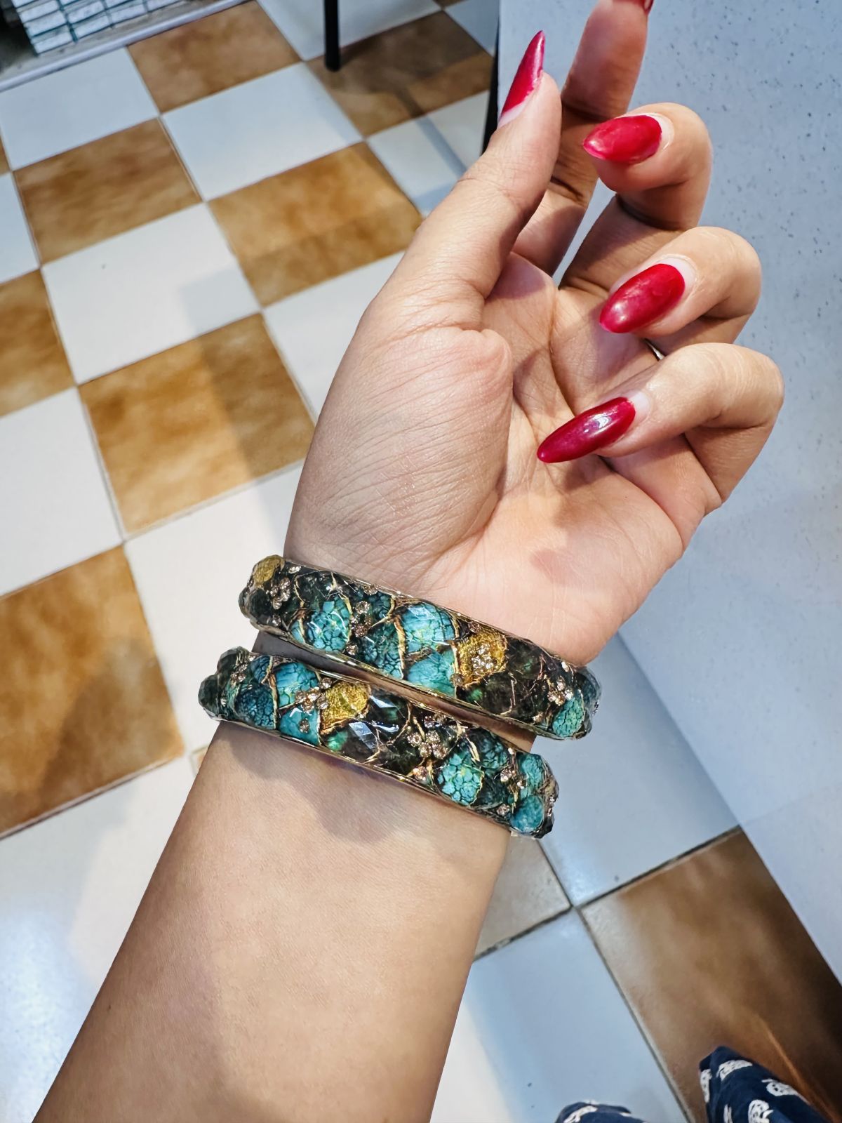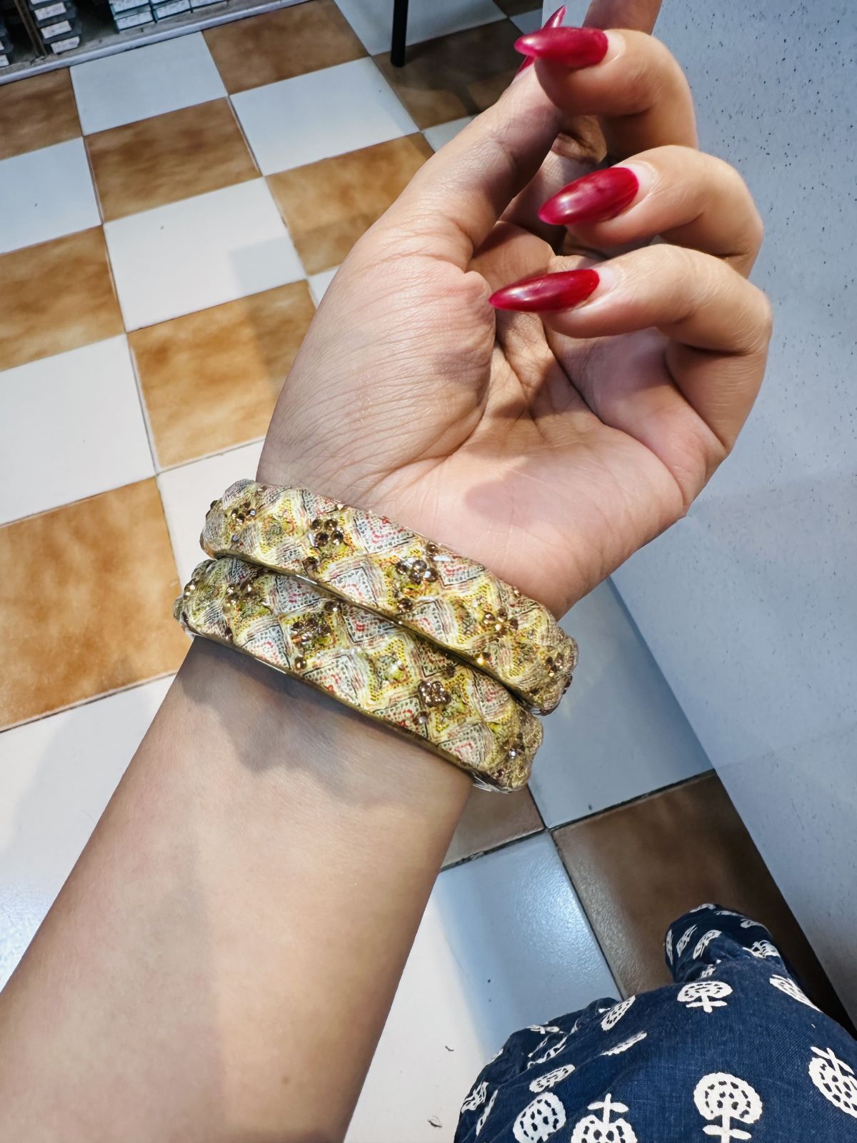We offer exquisite Ethnic Crystal Peacock Bangles crafted with high-quality crystal material in vibrant peacock colors. These bangles come in sizes 2.4, 2.6, 2.8, and 2.10, perfect for casual wear. Each bangle is elegantly packaged in a box, making it an ideal gift choice. To maintain their beauty, avoid contact with water and chemicals. As a leading Manufacturer, Exporter, Supplier, and Trader, we ensure top-notch quality and style in every piece. Elevate your accessory collection with these stunning Crystal Bangles that exude charm and elegance.