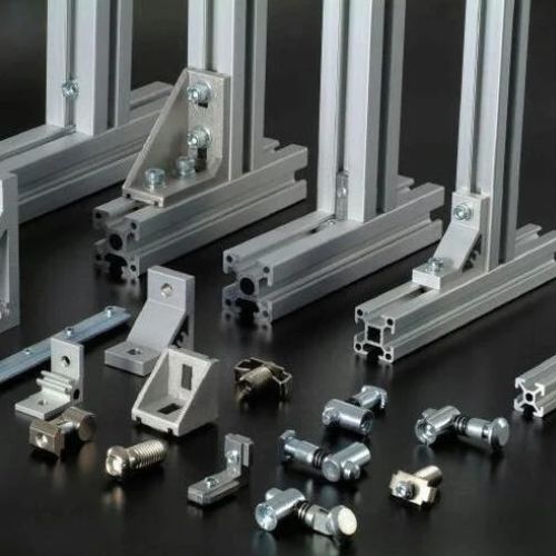 we have complete range of aluminium profile extrusions accessories fittings & all the accessories. all aluminium profile extrusions are anodized, extruded aluminum profiles are used for industrial conveyors, assembly tables, modular aluminium work stations, work station table, trolleys, machine guards, linear guides, partitions, machine frames, machinery guarding, linear motion systems, conveyor systems, industrial safety fences, clean rooms, workstations and work benches. etc.