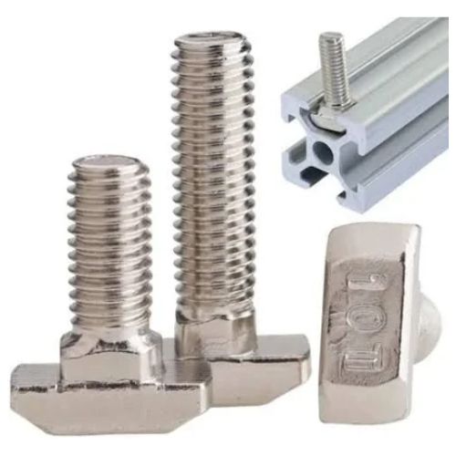 T Bolt can be inserted into the slot directly at the assembly position. The material is nickel plated steel.