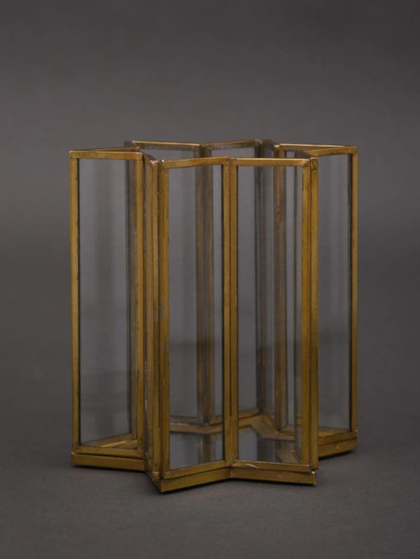 Enhance the ambiance of your special occasions with our 5-Inch Metal Frame Glass Hurricane Candleholder, a stunning and versatile addition to your event decor. This candleholder boasts a clear glass geometric design that adds a touch of sophistication to weddings, parties, and centerpieces. Create a warm and inviting atmosphere with the soft glow of candlelight. The clear glass enclosure beautifully showcases candles, casting a soothing and romantic light that elevates your decor.