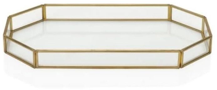 GPL Octagon Glass Tray with Brass Rim, Makeup Tray for Home Decor Jwelery Organiser for Accent Table (25cmx16cmx4cm)