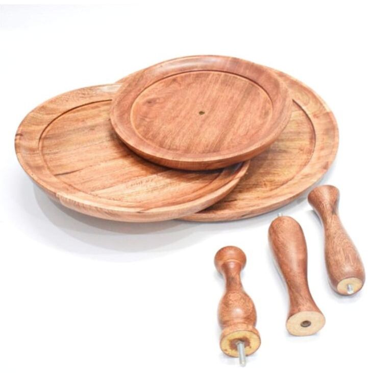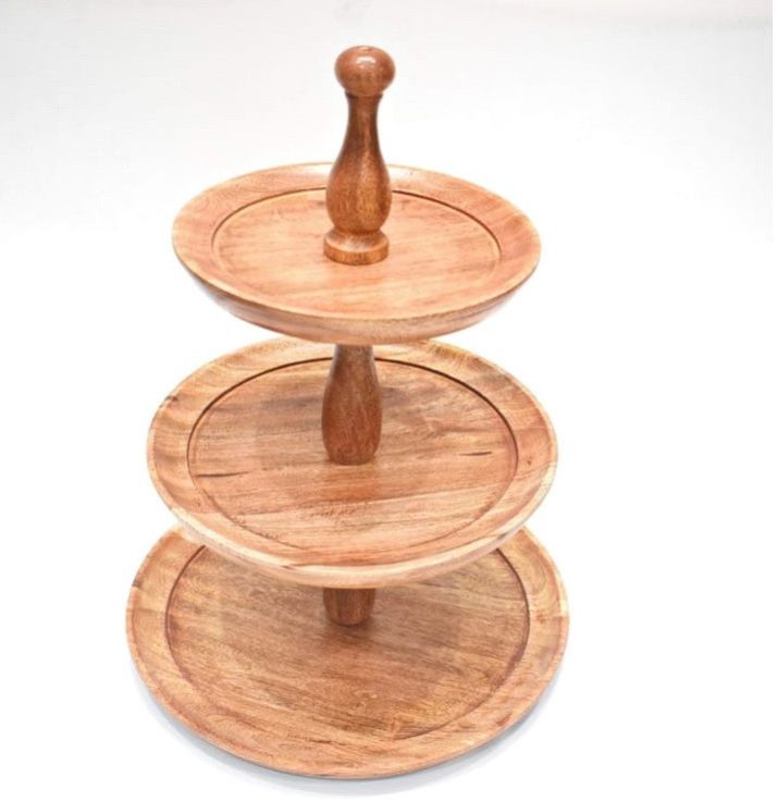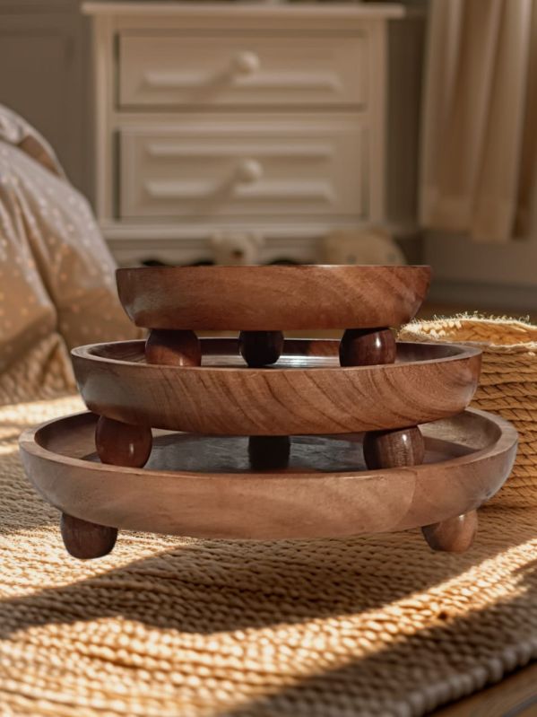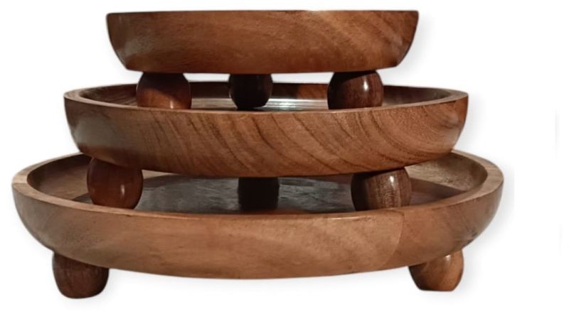 Three Different Size footed Round Serving platter, well finished, made up of Acacia Wood.