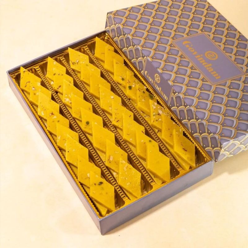 Mini Samosas from Govindam Sweets are crispy, bite-sized versions of the classic Indian snack. Filled with spiced vegetables and perfectly fried, theyre ideal for parties, quick snacks, or as appetizers.