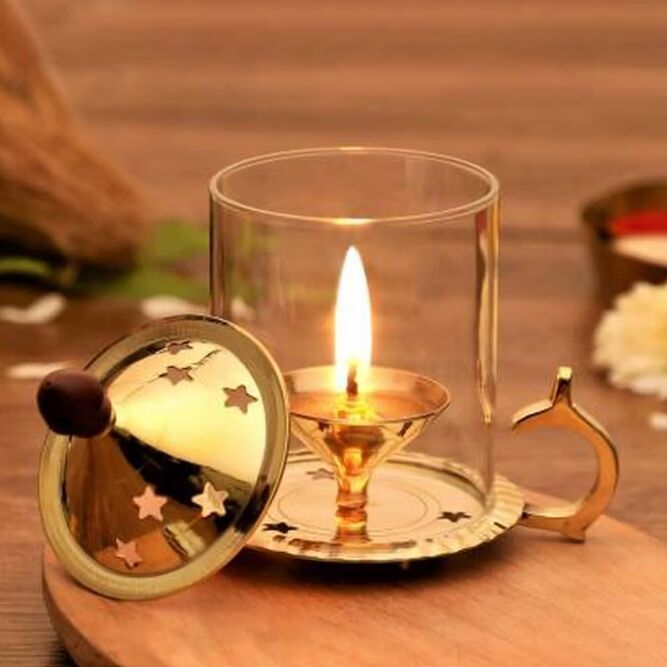A beautifully crafted lotus diya that symbolizes purity, enlightenment, and the triumph of light over darkness. Made typically from high-quality brass, this functional piece serves as a timeless element for daily worship rituals or festive home decoration, radiating a warm, serene glow.