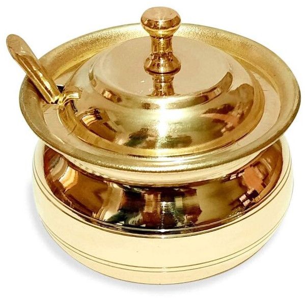We offer an exquisite Antique Brass Golden Ghee Pot, perfect for storing ghee in your kitchen. Crafted from high-quality brass with a polished surface finish, this round-shaped pot exudes antique charm and elegance. Ideal for both practical use and as a decorative piece, this kitchen utensil adds a touch of sophistication to your home. The golden color enhances its vintage appeal, making it a must-have for any antique lover. Trust us as your reliable Manufacturer and Supplier for this timeless piece that combines style and functionality seamlessly.