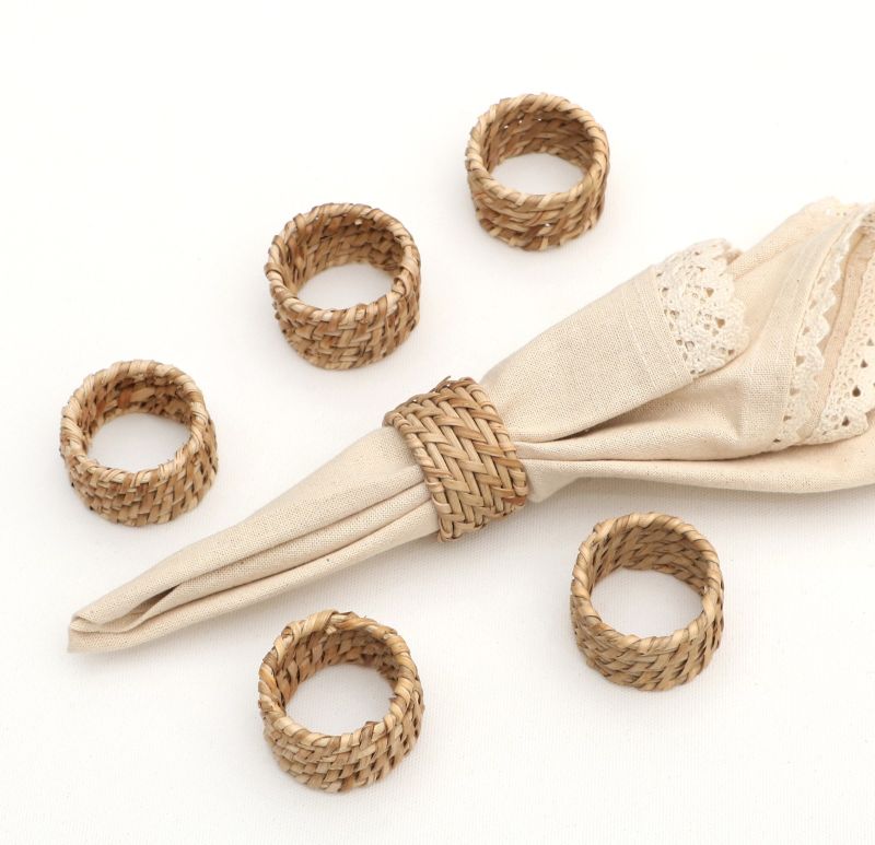 Enhance your dining experience with these handcrafted Sea Grass napkin rings. Designed in a classic vintage knot style, they are ideal for weddings, parties, festive dinners, and everyday table settings.