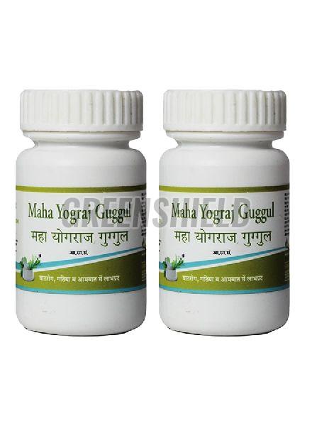Pranacharya Greenshield Mahayogaraj Guggul is an ayurvedic herbal-mineral preparation. It is used in joint and muscle disorders, and all types of pain disorders and inflammatory diseases.