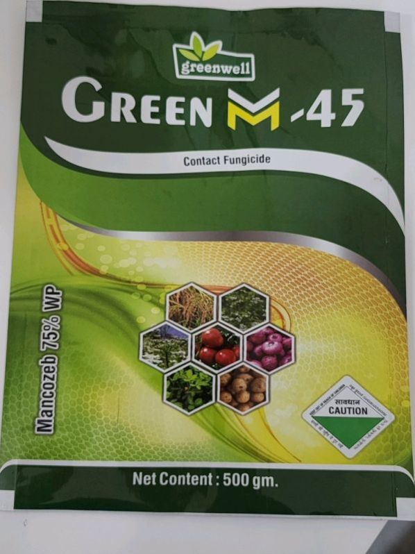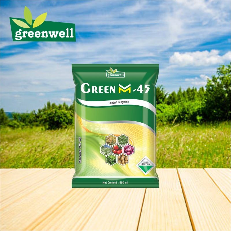 Product Description :-Green M 45 is a broad-spectrum fungicide with protective action. This product is formulated with highly dispersive agent so it will be disperse fast as comparative to marketed othe formulation.