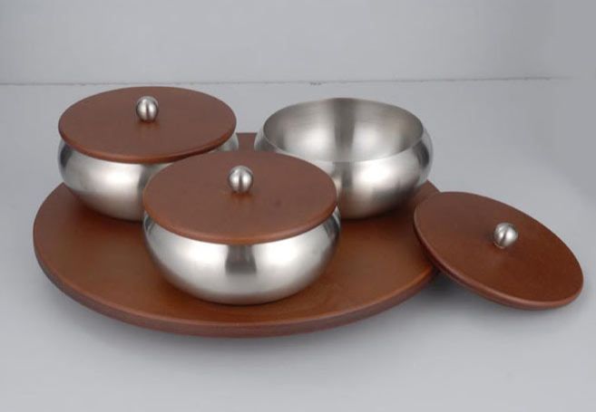 Wooden Tray with Bowl Set. The Wooden Tray with Bowl Set, we offer, is made of premium grade wood that enhances the strength and durability. Our range of Wooden Tray with Bowl Set is available in various sizes, dimensions, and patterns to meet the varied needs of valuable clients. The Wooden Tray with Bowl Set is highly acknowledged by the clients for its accurate dimension, excellent finishing, and light weight.