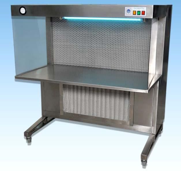 Hmg laminar flow bench CE certified for MIcro Bio / R&D Lab. Unit designed to provide a laminar flow work space comprising : standard features mini pleat hepa (99.997% @0.3 m) (factory dop tested). Pre filter 95% efficient @ 5 m, suitable motor blowing assembly/lies, working table top of s. Steel satin finish; side acrylic panels; fluorescent tube light ; u.v. Light & pressure differential manometer; castor wheel for ease movement.