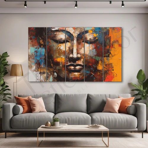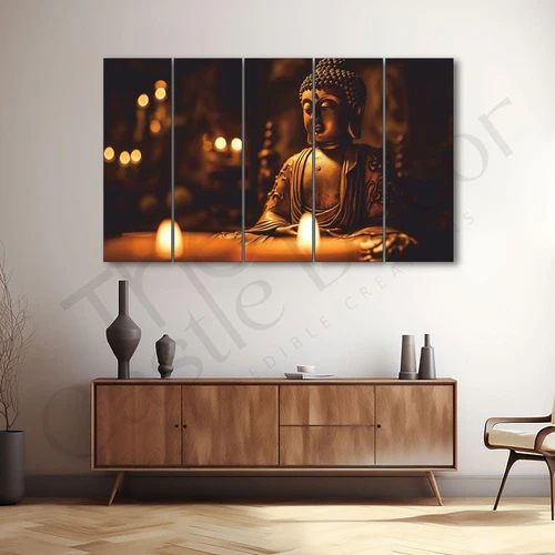 Big Size Wall Art Set: The Castle Decor presents Set of 5 wall art paintings with frame printed on PP with sharp colors using latex technology for accurate wall art prints. Premium Wooden Base and Lamination: Art panels are framed with Branded MDF of Grade A quality, providing a solid foundation for longlasting wall decor and Sparkle matte lamination protects prints, making them waterresistant, nonfading, and easy to clean with a soft damp cloth. Easy to install: Ready to hang framed wall art paintings include hanging clips, doublesided tape, and a leveling spacer for hasslefree alignment during installation.Installation guide given in box. Versatile Vaastu Design and Thoughtful Gifting : Perfectly designed according to vaastu principles, suitable for various spaces like living rooms, bedrooms, drawing room, offices, hotels; Ideal for gifting on occasions like Diwali, Christmas, New Year, Rakshabandhan, Navratri, Housewarming, EidulFitr, Ganesh Chaturthi, Buddha Purnima, new office inaugurations, and Holi. The Castle Decor has huge variety like Radha krishan paintings, lord Budha paintings, abstarct art, modern art and various customization offers. The Castle decor deals in B2B in hotels, corporates gifting and various other options.