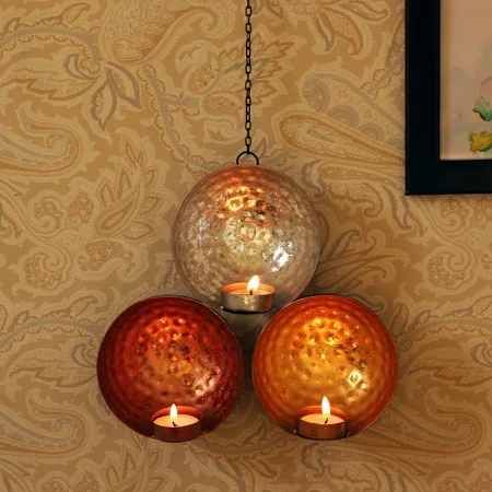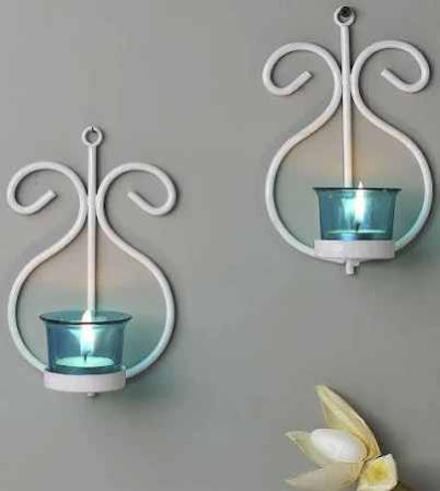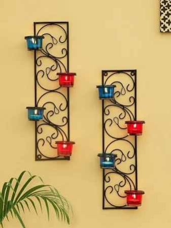 Elevate your home decor with these Metal Wall Hanging Tea Light Candle Holders. Crafted in India, this set of 2 multicolor round holders is perfect for adding a warm glow to any room. Designed for wall mounting, these holders are ideal for creating a cozy ambiance and enhancing the aesthetic appeal of your living space.