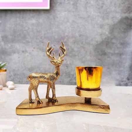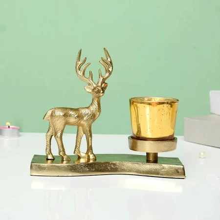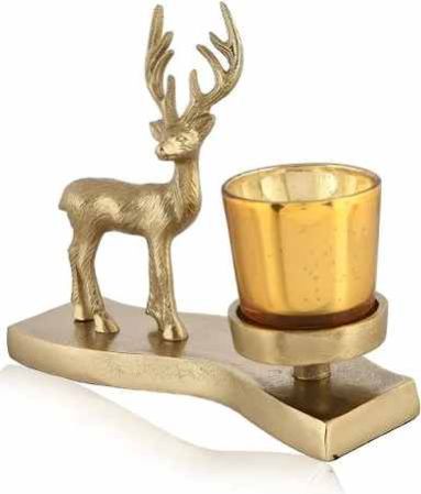 Add a touch of elegance to your home decor with this modern Deer Shape Metal Tea Light Candle Holder. Crafted from golden polished metal, this candle holder features a unique deer shape design, perfect for holding tea light candles. Enhance the ambiance of any room with this stylish and functional decor piece.
