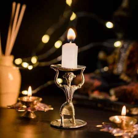 Elevate your home decor with this exquisite Brass Antique Tea Light Candle Holder from India. Crafted from polished brass in a golden hue, this antique-style holder adds a touch of elegance to any space. Perfect for creating a warm and inviting ambiance with decorative lighting.
