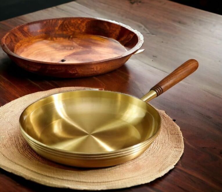 Leading Manufacturer, Supplier & Retailer of Brass Frying Pan with Wooden Handle.