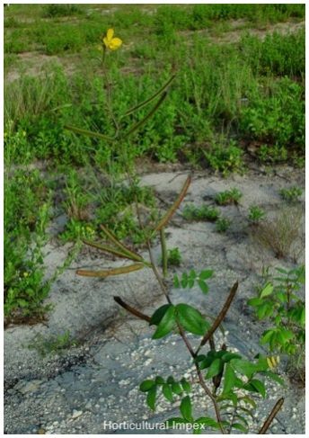 Cassia occidentalis is a diffuse undershrub found throughout India, attain a height of 2mt. leaves are entire, oblong, paripinnate, alternate, distichous. Flowering occurs throughout the year. Pod of the plant is short, flat, compressed, brown at maturity, seeds are many in number, brown in colour. The leaves, roots and seeds are purgative. The seeds and leaves are also antiperiodic. The seeds are used as external application for skin diseases. The seeds are roasted and used as a substitute for coffee in French Africa and in the north sector of Argentina. The medicinal properties, however, are lost by roasting.