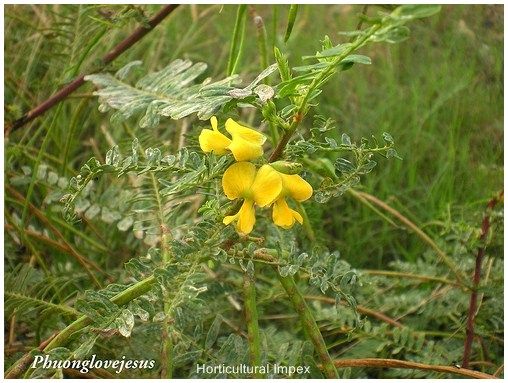 Sesbania sesban a soft wooded, quick-growing short lived shrub, 4-8mt. high, found cultivated throughout the plains of India up to an altitude of 1200m. Leaves 7.5-15cm long paripinnate, leaflets 8-20 pairs, linear-oblong, glabrous, entire, mucronate to acuminate, 6.0-25.0mm x 2.5-6.0mm, flowers yellow or yellow spotted red to purple or with standard petals coloured purple or brown form outside, in 8-10 flowered, lax, axillary racemes, 2.5-14.0cm long; pods 12.5-22.5cm x 0.25-0.37cm; pendulous, weak, distinctly torulose, twisted, sharply beaked, 20-30 seeded and sepate.
