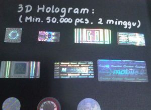 we are offering hologram sticker. 3d, diameter 1cm or 1.5cm, 1cm x 1cm, 1cm x 2cm, 1.5cm x 1.5cm, 2.2cm x 1.5cm, 2cm x 2cm, 2cm x 4cm, silver, metalizing, 14 days process....