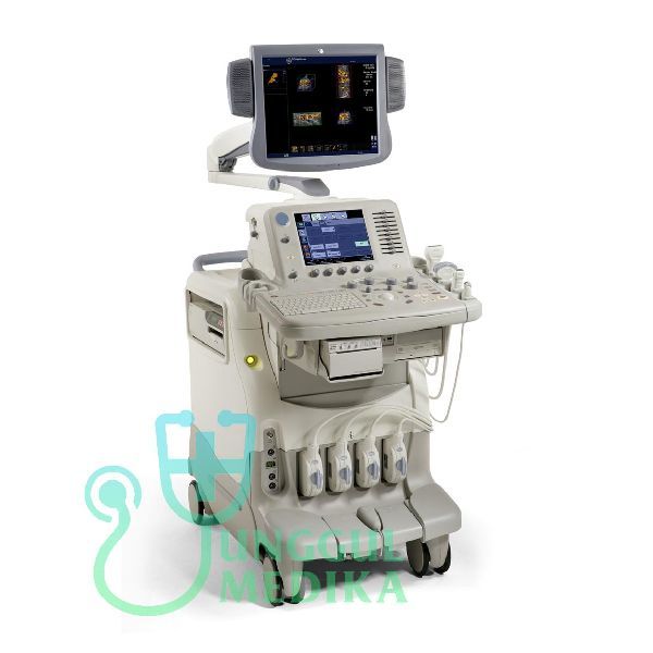 17" CRT monitor, Imaging modes: B-Mode, M-Mode, Color Doppler, Power Doppler, PW Doppler, CW Doppler, Volume 3D, B-Flow, Color M-Mode, 10.4" color programmable LCD touch screen, 3 probe ports , Topographic & Directional maps, HPRF [High Pulse Repetition Frequency], Coded Excitation, [SRI] Speckle Reduction Imaging, Anatomical M-mode, TrueScan, ComfortScan , LOGIQView [Extended field of view] , THI [Tissue harmonic imaging], ATO [Automatic Tissue Optimization], Virtual convex, General imaging IVF, Fetal cardiac, Urology, OB/GYN & Vascular reporting , Easy 3D (Baby Face) , 512 channel digital beamformers , Programmable keys for one-touch efficiency , 256 MB CINE loop, Magicut , Sonoview , On-board patient, image and reporting archive , Patient information database , CD-R drive , MO drive , PCMCIA and USB ports , 40 GB hard drive.