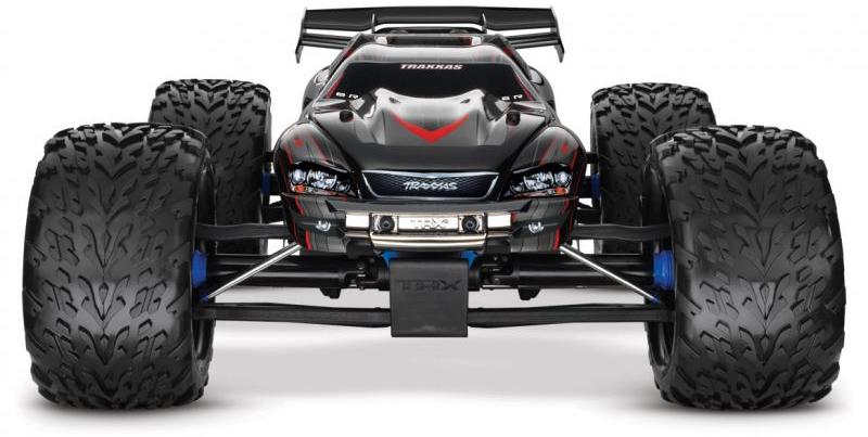 Length: 22.91 inches (582mm)front track: 16.38 inches (416mm)rear track: 16.48 inches (418.5mm)center ground clearance: 3.86 inches (98mm)weight: 9.2lbs (4.17kg) (wo batteries)10.9lbs (4.94kg) (with batteries)height (overall): 8.275 inches (210mm)wheelbase: 14.1 inches (358mm)front shock length: 87mmrear shock length: 87mmfront tires (pre-glued): talon (5.75" x 3.8")rear tires (pre-glued): talon (5.75" x 3.8")front wheels: 3.8" gemini (black-chrome) with 17mm splined hexrear wheels: 3.8" gemini (black-chrome) with 17mm splined hexspeed control type: mxl-6s waterproofmotor (electric): brushless, 2200kvtransmission: single-speed (2nd gear only)overall drive ratio: 18.83 (stock, out-of-box)differential type: sealed hardened steel bevelgear pitch: 32-pitchchassis structurematerial: molded composite nylon tubbrake type: electronicdrive system: shaft-driven 4wdsteering: bellcranktransmitter: tqi 2.4ghz radio system with traxxas link wireless modulereceiver: traxxas stability management (#6533)top speed: 35+mph (65+mph w two 3s lipo batteries)skill level: 2battery tray dimensions: 156mm x 50mm x 29mmincluded charger: traxxas 4amp dc peak detecting fast chargerincluded batteries: two traxxas 7-cell nimh battery with idtmrequired batteries: 4 "aa" (transmitter) features: new traxxas stability mangementtraxxas 4amp dc peak detecting fast chargertraxxas power cell nimh battery with idtqi 2.4ghz high output radio system with traxxas link wireless moduletqi 2.4ghz transmitter.