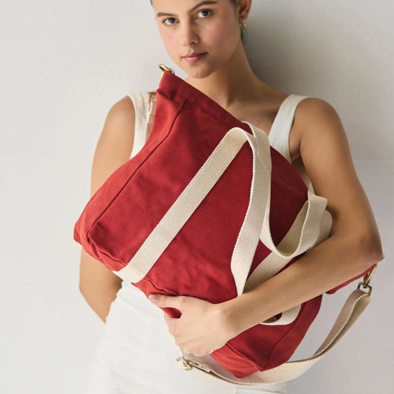 Whether slung over the shoulder, worn crossbody, or carried as a top-handle bag, this convertible canvas bag adapts effortlessly to various styles, adding understated elegance to your look.