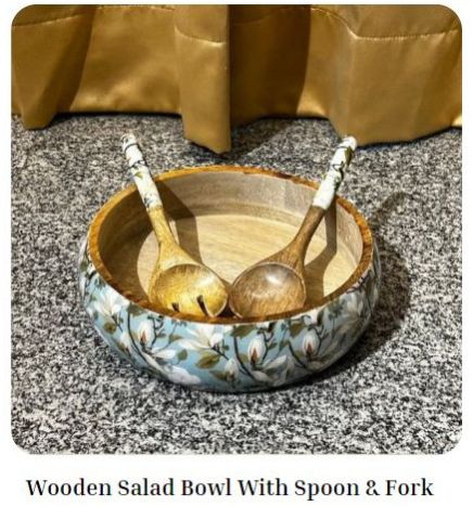 We offer a complete product range of Deep Wooden Salad Bowl, Wooden Salad Bowl and Wooden Salad Bowl with Spoon and Fork