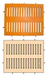 RangeGratings are available in standard lengths of 500 mm and 600 mm and in widths of 150mm, 200mm, 375mm and 400 mm. They are provided with slots.
