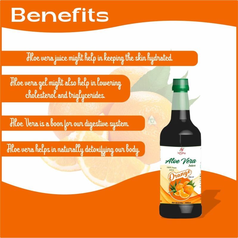 Aloe vera juicewithorange flavouris an excellent detoxifying agent. It is rich in antioxidants and promotes new cell regeneration.It strengthens the digestive process and prevents stomach illnesses. It heals and prevents acidity, abdominal bloating, constipation, and gas problems.