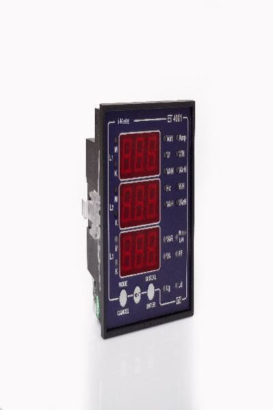 Invendis ET4001 P & E with Serial Communication, Class 1.0, 85 - 270V AC/DC, 415/110 V, 3 Phase, 5A, 3 R 3 DIGIT 0.56", V, A, KW, Hz, PF, KVA, kWh, Load Hrs V(LL), Amps, Hz, W, VA, VAR, PF, kWh, kVAh, kVARh, RS485, LED display