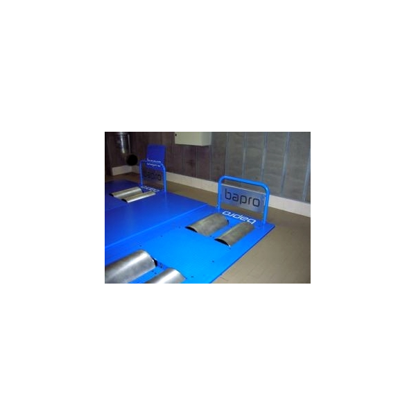 Road Simulator and Chassis Dynamometers Bapro is the only company totally dedicated to the development and production of chassis dynamo-meters/road simulators for cars and motorbikes. Advantages: Shorter repair time (fast and exact diagnosis)effective use of the instruments already present in workshop (diagnosis equipment, gas analyzer)Avoid any risks from road tests (traffic, accidents, fines)Results certification (performance enhancement)Accessories sale improvement by result verification (exhaust systems, efi controller etc.)Second-hand vehicles sale improvement by engine health certificationVehicle check before second-hand tradesRenting for tests and technical checks CONFIGURATION 4R: Powder coated tubular frame made by high strength steel (2 items) (allow to test high power heavy vehicles ensuring steady measures over the time) Pro: Maximum strength with minimum flexure compared to the competitor sheet metal frame. 8 big diameter rollers knurled over the entire width (Bapro is the sole to adopt the cut knurling that give the best grip to the tire) Pro: maximum precision, minimum slippage, avoid the tire overheat with less wear HTD belt transmission between rollers (toothed belt that distribute the vehicle power between the rollers) Pro: chance to test high power vehicles Pneumatic vehicle lifter with rollers lock (high quality pneumatic lifter) Pro: make easier the vehicle positioning on the road simulator by locking the rollers and lowering the step Front chassis dynamometer on rails to adjust the wheelbase (the traversing module is composed by high precision carriages working on rails. The carriages support the dynamometer that is moved by heavy duty screws jack) Pro: heavy duty, long range wheelbase and wide working surface Eddy current brake with load cell (allow to perform load tests and fixed rpm) Pro: the brake and the rollers are mounted in the same frame, that is conceived to withstand the power of the ultra highpower vehicles.