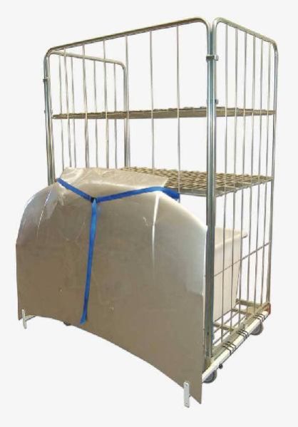 Small trolley for spare parts capacity kg 400. Equipped with particular wheels which allow an easy movement even on grids. Standard supply: 1 trolley with 3 sides1 shelf cm 120 x 801 safety belt cm 120