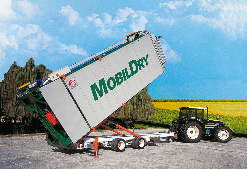 We are offering ready to use mobile grain dryer. the drying column is formed by a bucket elevator which loads an upper hopper and by a number of modules with internal ducts, immersed in the grain, which descends by way of gravity in a zigzag movement. The grain encounters a countercurrent of hot air in the upper drying zone and a stream of air from the outside environment in the lower cooling zone. The exhaust air exits directly into the atmosphere. The quantity of grain released is predetermined and regulated by a pneumatic extractor. The product is collected in a discharge hopper and sent to a second bucket elevator that brings the product to a certain height for subsequent transportation to its destination. recyclingthe drying column is formed by a single loadingunloading bucket elevator which feeds the upper hopper, and by a number of modules with internal ducts immersed in the grain, which descends by way of gravity in a zigzag movement. Along the entire column the grain encounters a countercurrent of hot air and is dried by continuous recycling until it reaches the desired humidity. At this point the burner is stopped and the product is cooled with air from the outside environment only. The exhaust air exits directly into the atmosphere. The quantity of grain released is predetermined and regulated by a pneumatic extractor. The product is collected in a discharge hopper and transported by the same bucket elevator to a certain height for subsequent transportation to its destination.