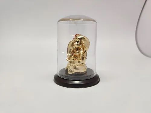 Gold Plated Lord Ganesha Idolin a protective acrylic dome with a base of brownABS A gradematerial which has a height of 2.5 inchesdecorative for home, car's dashboard.