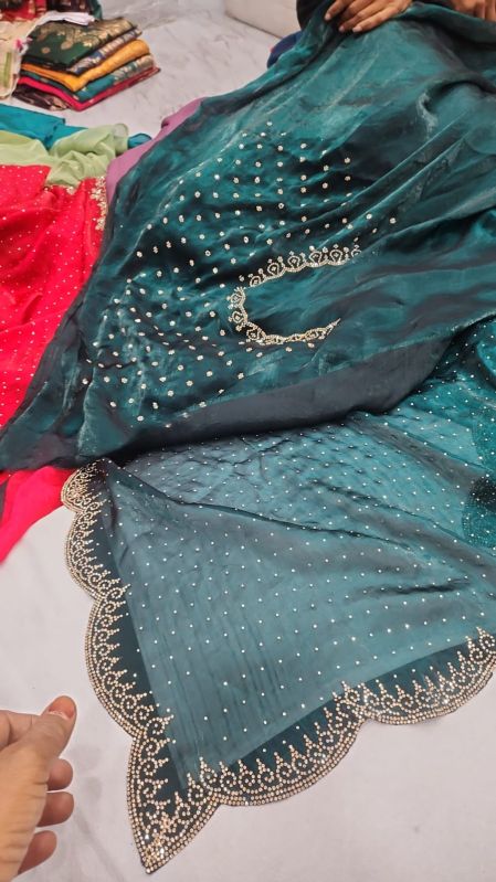 फैंसी ज़ारकन लेस ब्लाउस साड़ी Indian Saree